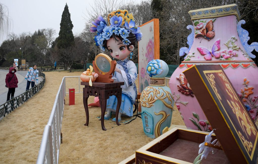 2026年1月30日,游客观赏“少女雨荷”花灯。 近日,一组组“少女雨荷”造型花灯亮相山东济南大明湖畔,萌趣可爱的形象吸引不少游客驻足观赏。 中新社记者 张勇 摄