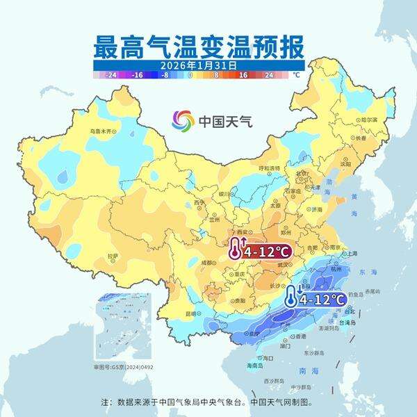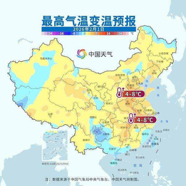 从最高气温看,全国大部地区气温将在明后天陆续开始迅速触底反弹。明天,西北地区东部、华北中南部至湖北中西部等地就将开始升温。进入2月,江南、华南多地也会陆续转为升温。