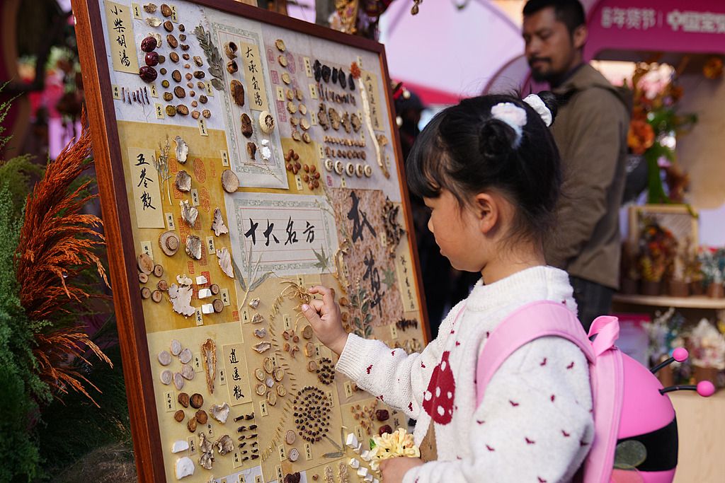 2026年1月30日,2026云南非遗过大年活动在昆明启动。春节期间,云南全省将开展涵盖“古城过大年”“非遗馆里过大年”“非遗年货购物月”等多个类型的127场活动,为市民和游客带来“可看、可玩、可品、可带走”的立体年味体验,感受“有一种叫云南的生活”。图为活动现场展出的植物装饰画吸引小朋友。 中新社记者 刘冉阳 摄