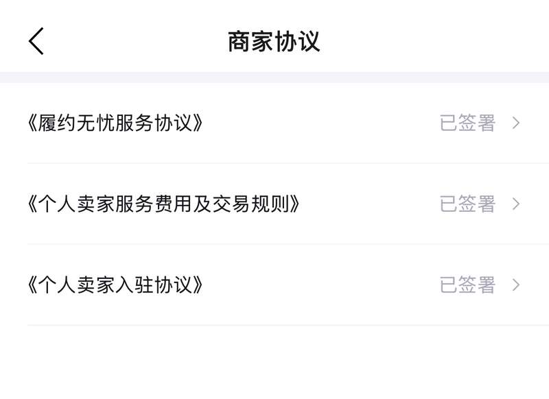 记者操作后发现,在得物平台开通出售物品服务时,需要签署三份商家协议,分别为《履约无忧服务协议》、《个人卖家服务费用及交易规则》、《个人卖家入驻协议》。得物商家专席客服表示,卖家可在“商家中心”右上角的“设置”内查看商家协议,同为这三款协议,并未出现“补充协议”。