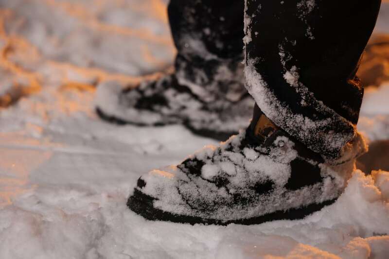 积雪覆盖突击队队员的衣服和鞋子。廖炳达/摄