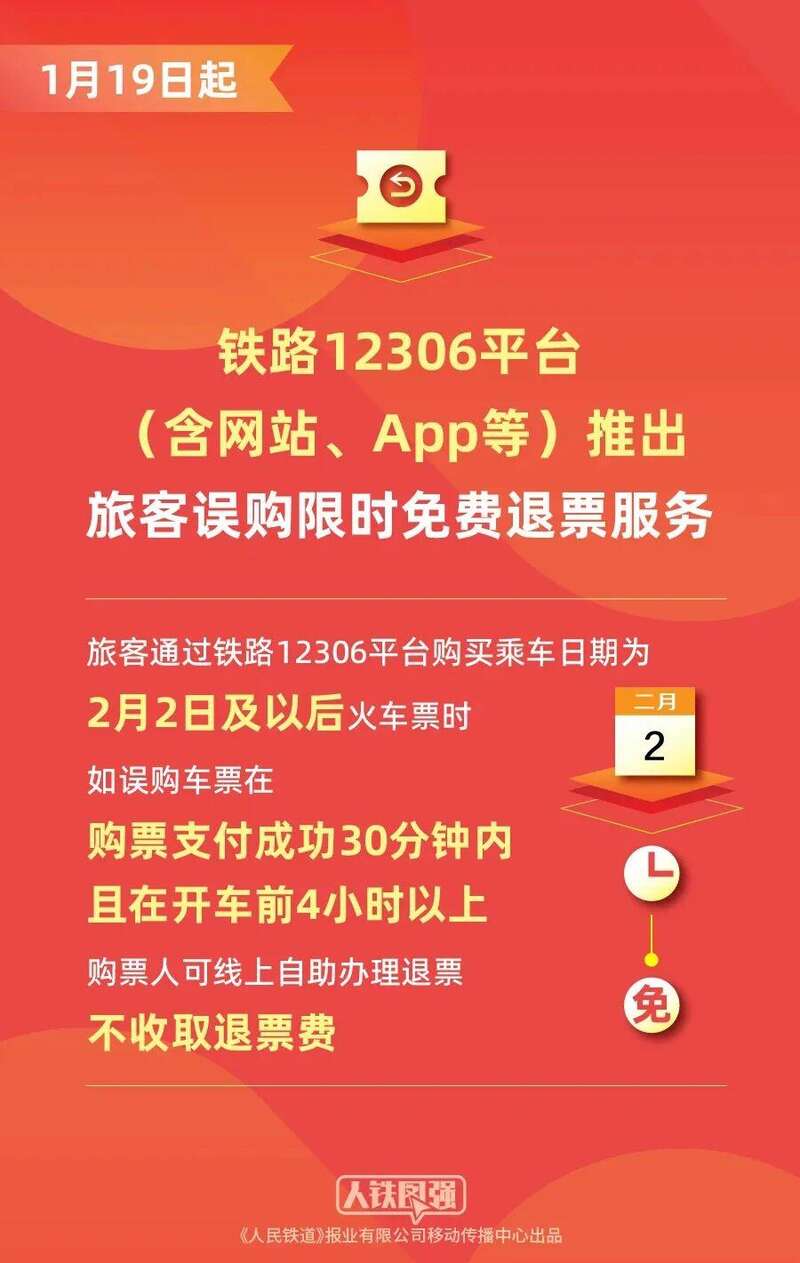 一是限时免费退票,如发生误购车票,在购票支付成功30分钟内且在开车前4小时以上,购票人可线上自助办理退票,不收取退票费。
