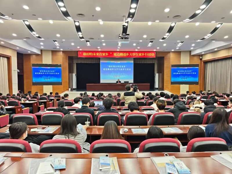 在随后举行的“延边学子归巢·州长寄语未来”主题宣讲报告会上,延边州人民政府副州长尹朝晖为学子们作宣讲。她介绍了延边州在经济建设、社会发展、对外开放等领域取得的成就与未来规划,以及家乡对青年人才的迫切需求。