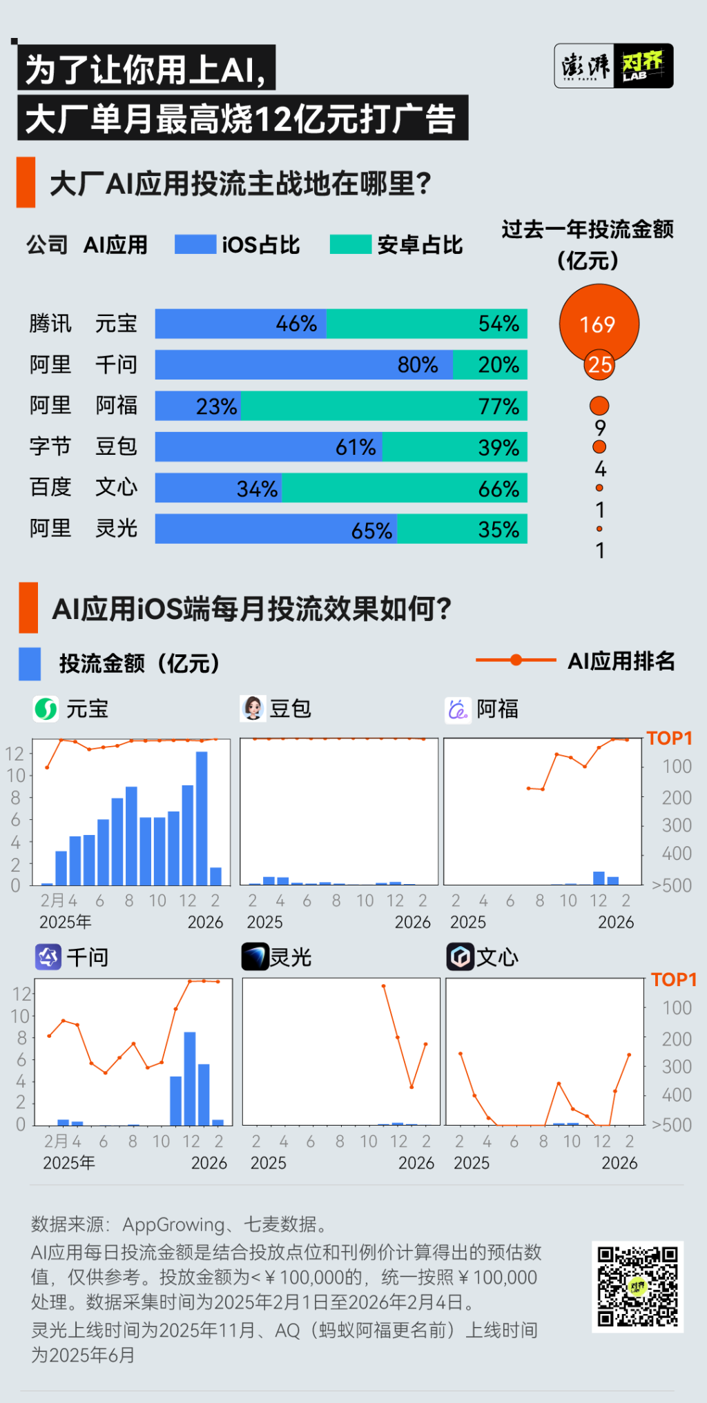 即便如此,先入场的选手已然有了身位优势。QuestMobile数据显示,2025年Q3豆包月活达到1.72亿,超过DeepSeek(1.44亿)和元宝(3286万),成为中国AI应用头部。对于元宝、千问和文心来说,抢占C端市场,需要在各方面投入更多。而过去一年大厂在AI应用投流上的花销,直观展现了这场流量厮杀背后的重金投入。