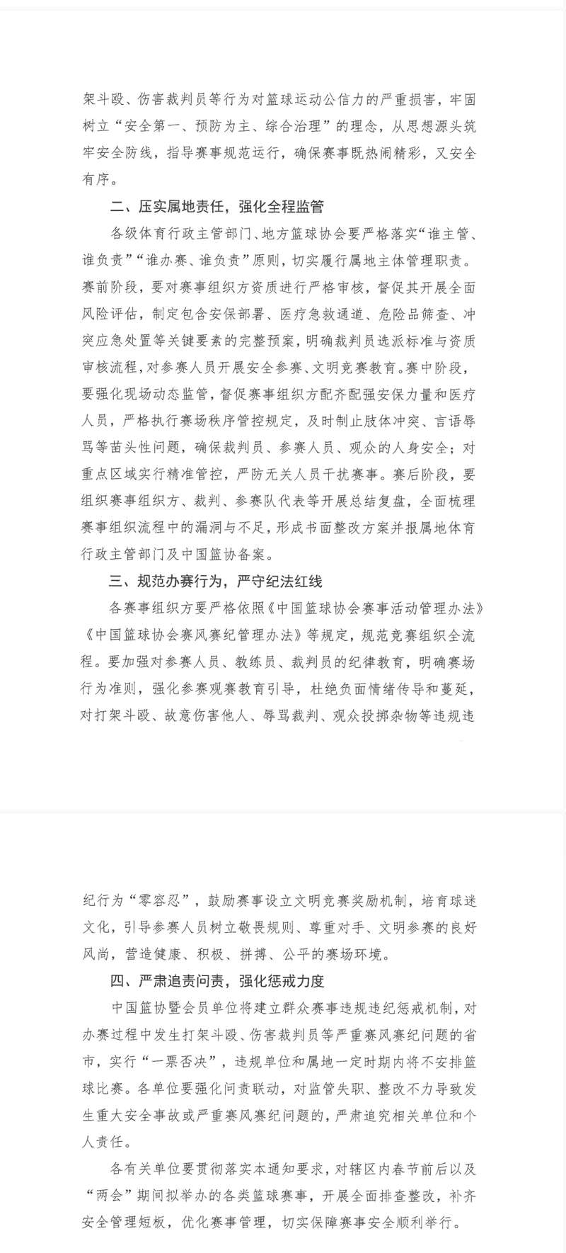 2月7日,中国篮球协会网站发布关于进一步加强群众性赛事安全监管工作的通知。