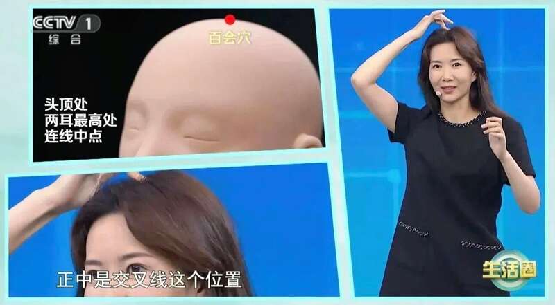顺时针按摩百会穴、四神聪各10次;