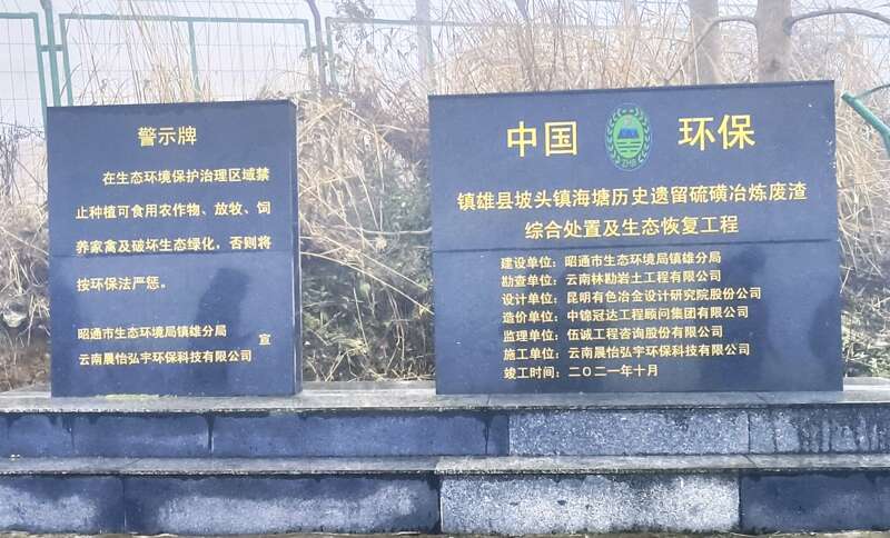 20世纪遗留的750吨硫磺废渣涉及赤水河流域三个乡镇,其中坡头镇海塘点位有250万吨硫磺废渣,曾是悬在镇雄赤水河畔的生态隐患。裸露的废渣经雨水冲刷,强酸性废水直排入河,河水pH值一度跌至3.17-4.48,偏酸性严重威胁着赤水河的生态安全。