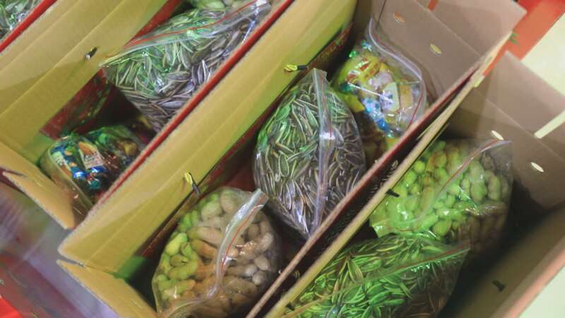 新和县聚辉农业发展有限公司工作人员在分装礼包。阿克苏地委宣传部供图