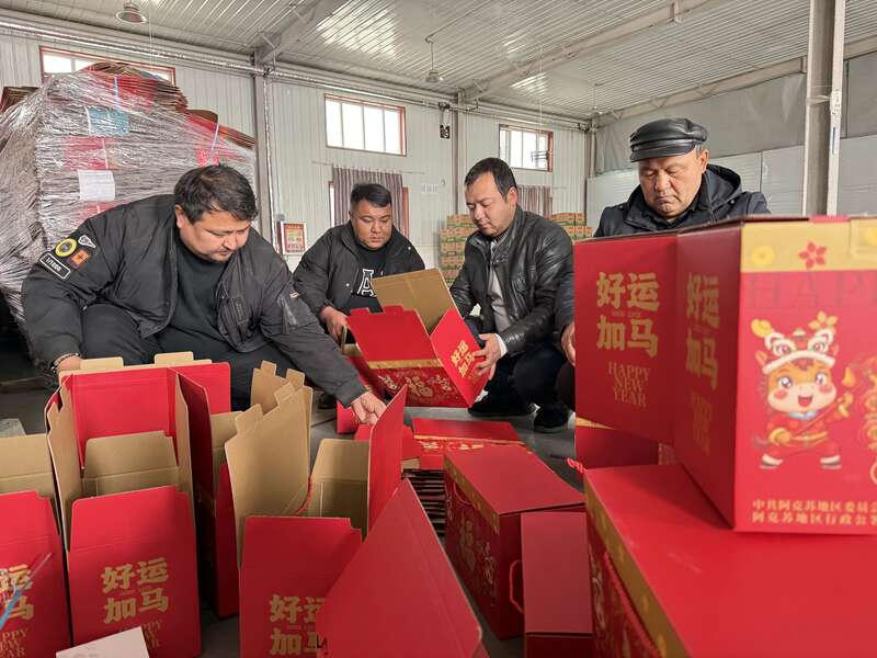 在物资采购环节,阿克苏地区优选本地特色产品,将瓜子、花生、糖果、干果、点心及春联等纳入礼包,既贴合春节习俗,又带动本地产业发展,实现“惠民”与“助农”双赢。