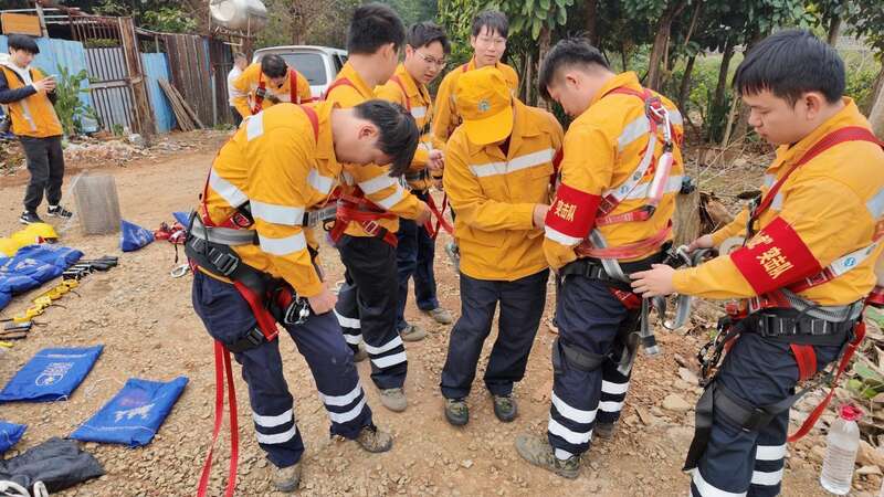 在抵达目标位置前,队员们还需要攀爬一段近乎90度的崖壁。大家脚下踩着只能容下五分之一个脚掌的防护网,手也必须紧紧抓住防护网,一刻不容放松。