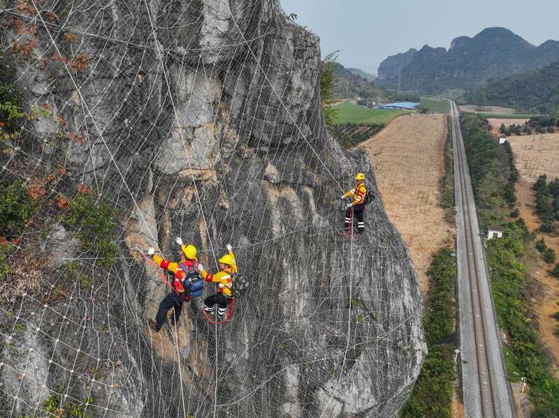 这段时间,中国铁路南宁局南宁工务段南宁路桥检查工区工长杨发登和队友要爬上铁路沿线陡峭的山峰,排查危岩落石隐患,保障铁路运行安全。