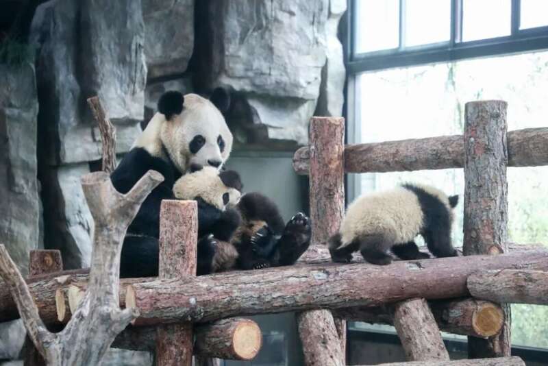 大熊猫龙凤胎将在春节期间与游客见面,刚来沪的“小姨”正在适应阶段