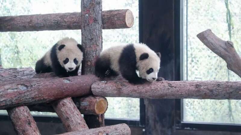 当日上午,记者提前探访了大熊猫母幼展区,姐姐“芊然”和弟弟“芊逸”表现十分活跃,或在滑滑梯上灵活攀爬,或在栖架上互动玩耍,时而碰头亲昵,时而追逐打滚,憨态可掬。