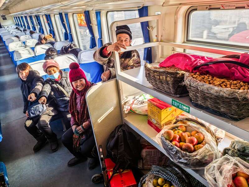 A slow train carries the happiness of the people.While high-speed rail defines modern China, the 6433/4 "slow train" remains a vital lifeline in the Yanshan Mountains. Charging as little as 4 yuan, it serves as a "mobile market" for farmers like Ms. Fang to transport produce to urban buyers. With dedicated cargo racks and supportive staff, this service prioritizes community welfare over speed. Today, China maintains 81 pairs of these public welfare trains, ensuring that as the nation accelerates, the warmth of its development reaches every remote corner, leaving no one behind.