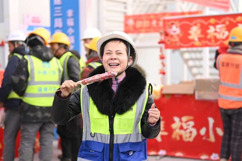 “在工地上还能赶上这么贴心的集市,真是没想到!”来自湖北的模板工周师傅提着刚买的糕点、春联和特产,笑容满面,“东西实在,气氛也好,感觉年已经到身边了。”