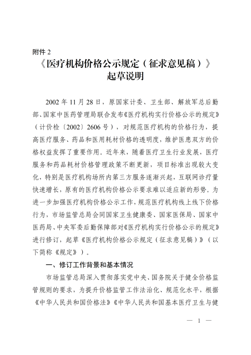 2.《医疗机构价格公示规定(征求意见稿)》起草说明