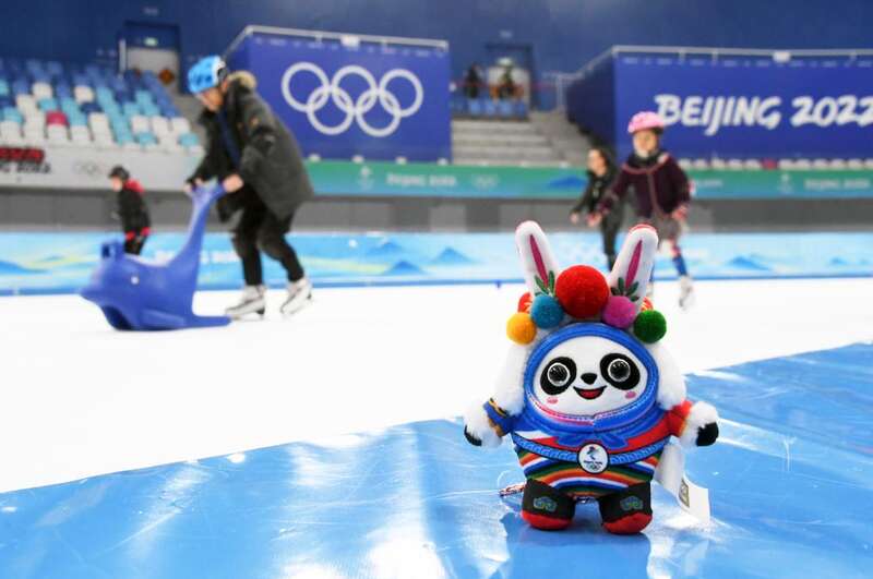 2023年1月22日在国家速滑馆拍摄的“兔墩墩”。 新华社记者 任超 摄