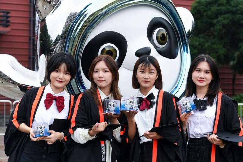 2022年6月8日,广州美院毕业生捧着“冰墩墩”在校园内拍照留念。新华社记者 刘大伟 摄