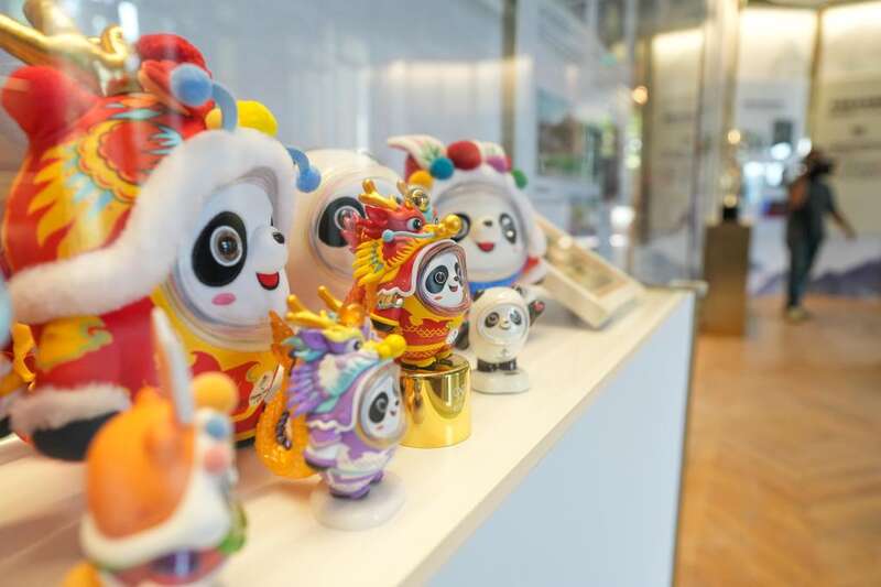 2024年4月15日在意大利米兰设计周“中国周”展区拍摄的“冰墩墩”系列产品。 新华社发