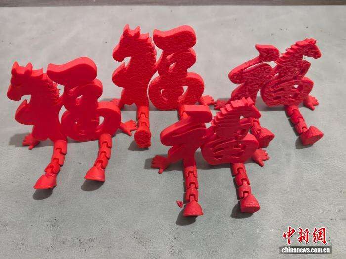 这场热潮中,有人为自己和家人创作,也有人为他人“打印出”新春祝福。春节前,淘宝店主田甜甜在自己的3D打印店铺上架了带有马元素的立体“福”字,寓意“马上有福”,适合摆放在玄关、床头等处,上架不久便成为店里的人气单品。