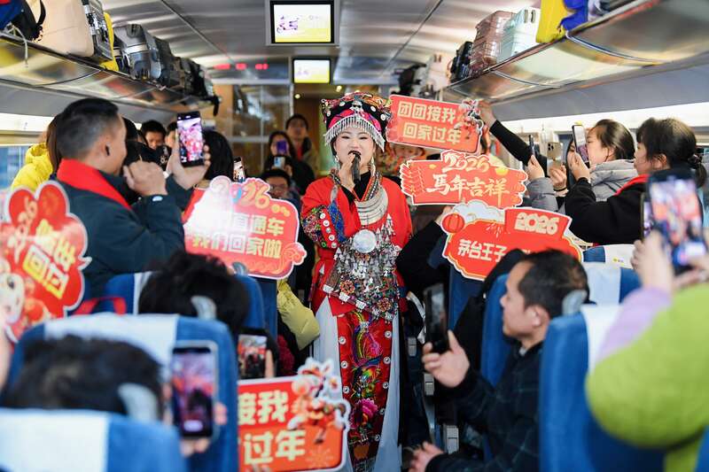 返乡列车上的文艺表演。共青团贵州省委供图