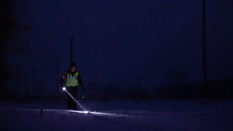 凌晨6时30分,我随老薛踏上巡线路。今年已57岁的老薛,在雪地中步履轻盈。积雪没踝,寒风如刃,仅走半公里我便双脚麻木。老薛负责安全巡视铁路沿线22公里,32年来踏过春雪、夏汛、秋霜、冬寒,日复一日从未停歇;独自驻站15年,3辆自行车被岁月磨坏。巡线时,他有一个时刻不离身的记录本,里面记录着每一处涵洞编号、每一段铁轨隐患。弯腰查涵洞时,警帽积雪簌簌滑落,身材并不魁梧的他双手布满老茧,在固定标语牌缠绕铁丝时异常有力。