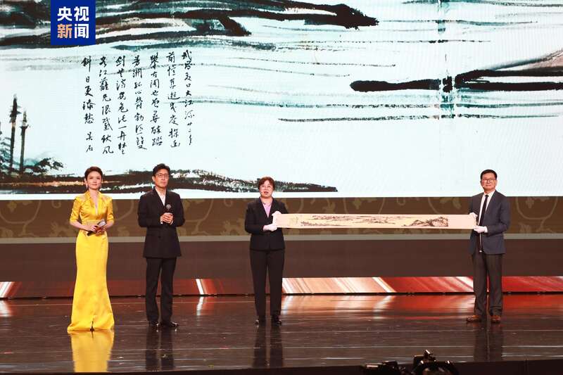 一幅承载着英雄壮志和家国期许的《长江万里图》画卷将盛典现场氛围推向高潮,《沉默的荣耀》原型人物吴石将军的孙女吴红与何遂先生的孙子何代宁亲临现场,与吴石将军的饰演者于和伟共同完成从艺术到现实的精神接力。