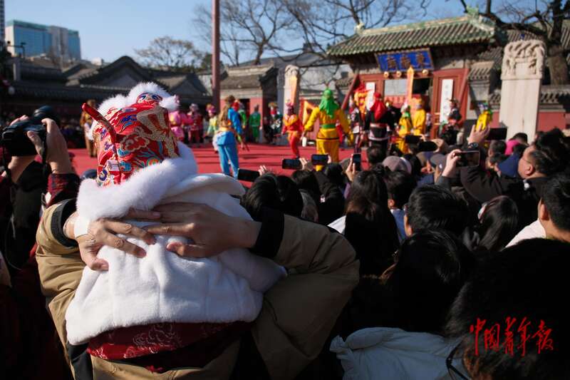 2月18日,北京北顶娘娘庙庙会,民俗表演吸引了许多观众前来观看。中青报·中青网记者 陈思阳/摄