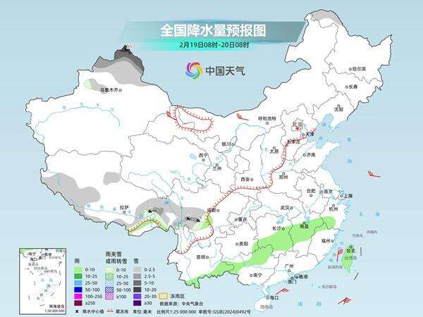 明天,我国西南地区东部至江南地区降水缩减,多地有望放晴。中央气象台预计,内蒙古东部、新疆北疆东部和沿天山地区、西藏东南部等地部分地区有小雪或雨夹雪,其中,新疆塔城和沿天山地区等地部分地区有中雪,局地大到暴雪。西藏东南部、云南南部、台湾岛大部等地部分地区有小雨。