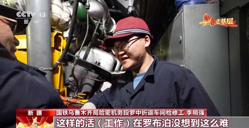 国铁乌鲁木齐局哈密机务段罗中折返车间检修工 李明强:爸、妈,儿子在这给您拜年了。今年除夕我可能回不去了,但是你放心。大漠戈壁也是另一种风景,罗布泊有平时看不见的星空,落日也非常漂亮。在这里走好自己的每一步,就是对我们西部更好的一个发展。我觉得我的青春能在这里绽放出更加绚丽的色彩。