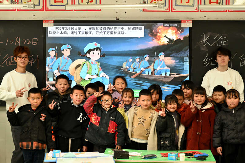 中国青年报客户端讯(中青报·中青网记者胡春艳 通讯员徐进恒)“红小丫,你真是个勇敢的小英雄!”在四川珙县玉和苗族乡中心小学,孩子们把这句话端端正正地写在便利贴上,悄悄贴上讲台。这个寒假,一群来自天津大学“星火”支教队的青年学子,带着“长征金课”走进这所山村小学。一场跨越时空的青春对话,在绘本、彩笔与书信中静静展开。