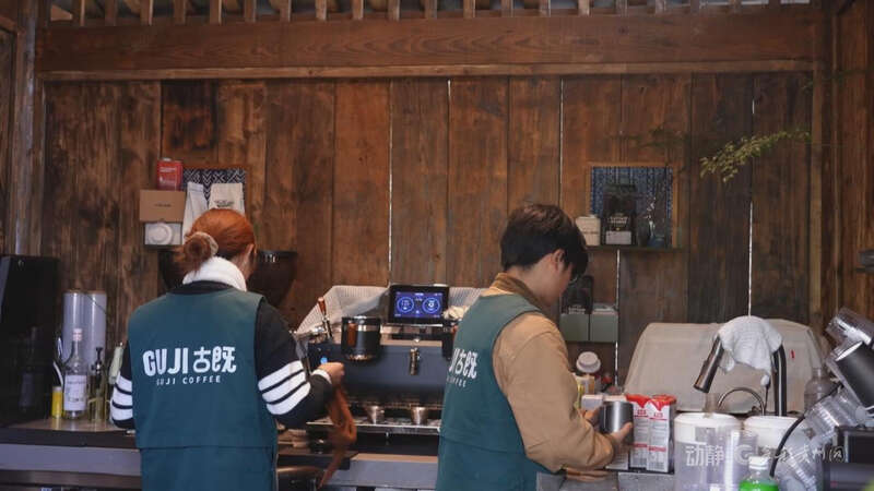 村民胡慧琴在家门口当上咖啡厅店员,包吃包住,工作惬意;