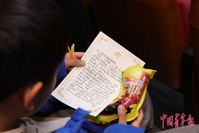2月28日,北京理工大学附属中学高中部,高三(一)班举行班级成人礼活动,一位小朋友也收到了自家哥哥姐姐写的信。中青在线记者 陈思阳/摄