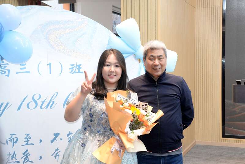 2月28日,北京理工大学附属中学高中部,高三(一)班举行班级成人礼活动,高三年级组长与同学一起合影。校方供图