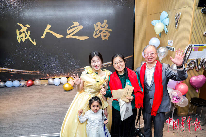 2月28日,北京理工大学附属中学高中部,高三(一)班举行班级成人礼活动,一家三口共同庆祝孩子的成人仪式。中青在线记者 陈思阳/摄