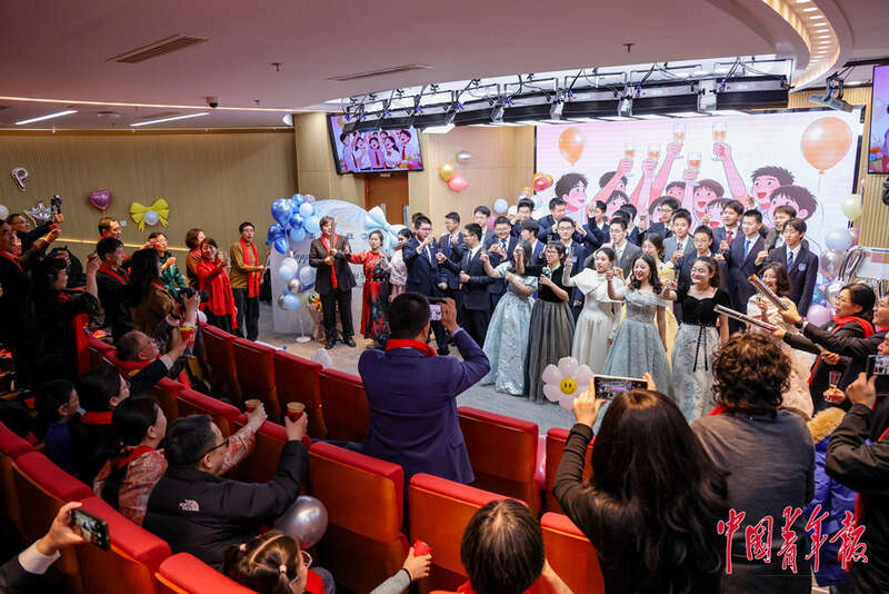 2月28日,北京理工大学附属中学高中部,高三(一)班举行班级成人礼活动,同学们身穿礼服正装,共同庆祝。中青在线记者 陈思阳/摄