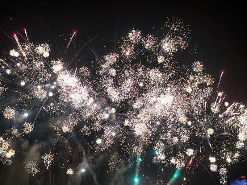 焰火绽满皖南夜空,碎金如雨洒落人间。