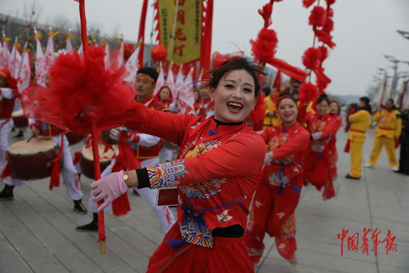 2月28日上午,北京中轴线玲珑塔旁的庆典广场,“非遗贺新春 民俗闹红火”活动现场,来自北京、陕西、山西、浙江、内蒙古等8个省(区、市)的民俗展演团队,近600名表演人员,为广大观众呈现麒麟舞、寿阳高跷竹马戏、蒙古族马头琴音乐、龙舞(浦江板凳龙)等14项民俗展演项目。中青报·中青网记者 孔斯琪/摄