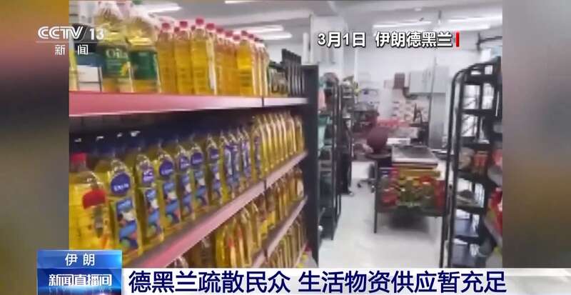 刚刚我们也探访了德黑兰地区的超市,超市里米面油等基本生活物资供应充足,没有出现短缺情况。