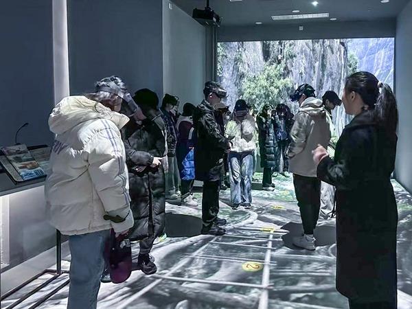 在全国高校思政课虚拟仿真体验教学中心(北京理工大学),李璎珞所在的这个没有讲台和课桌的房间名叫“知课堂”。在“无穷之路”主题的虚拟仿真实验课上,她完成引入讲解之后,学生们就得“动起来”,在200平方米的空间里挪步:在“情课堂”的沉浸式大屏学脱贫攻坚知识;在“行课堂”戴上VR眼镜,体验四川省凉山彝族自治州“悬崖村”孩子们上学路的改变;在“意课堂”了解学校定点帮扶地区如何摆脱贫困;最后再回到“知课堂”深入研讨一些问题。