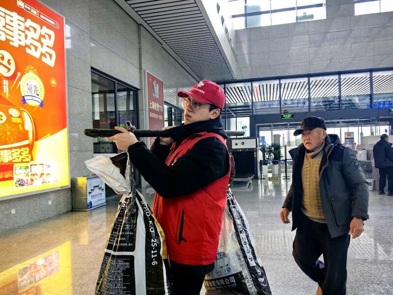 “这是我来这里做志愿者的第五个年头,看着旅客们顺利回家,我觉得特别有意义。”冯子豪是一名返乡大学生,也是志愿服务项目负责人。今年春节假期,他们组建了多支志愿服务小队,设立问询岗、帮扶岗、应急岗,备齐了针线盒、老花镜、充电宝等便民物资。