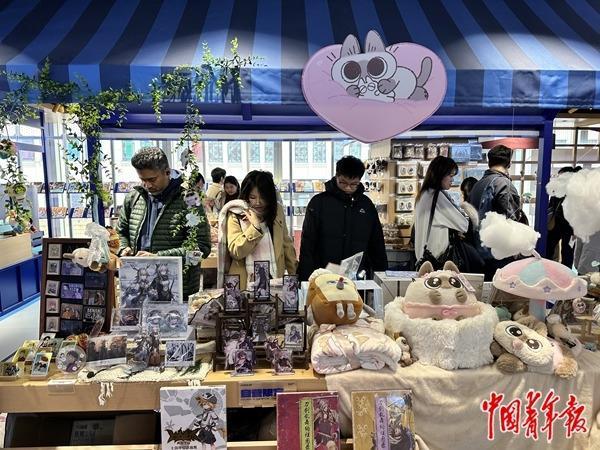上海百联ZX创趣场内,年轻人在挑选心仪的“谷子”。中青报·中青网记者 王一迪/摄