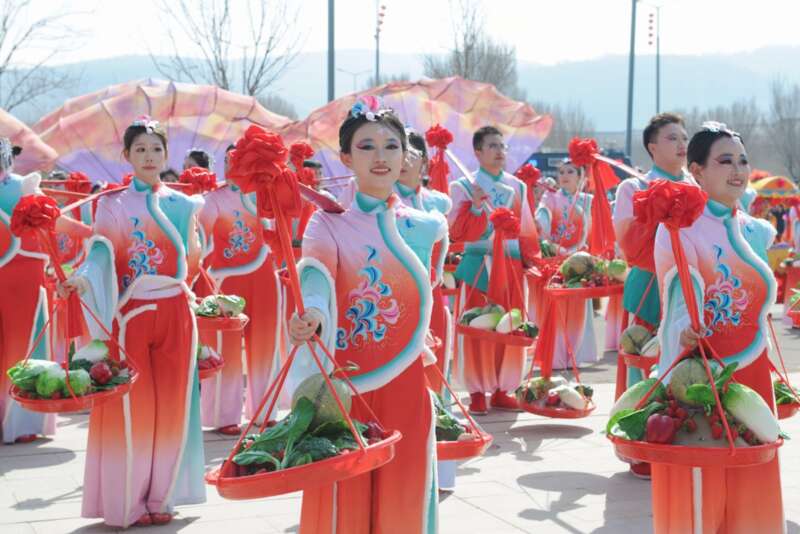 3月3日,宁夏回族自治区固原市西吉县将台堡红军长征会师纪念园会师广场,固原市第三届社火大赛现场。宁夏固原市委宣传部供图