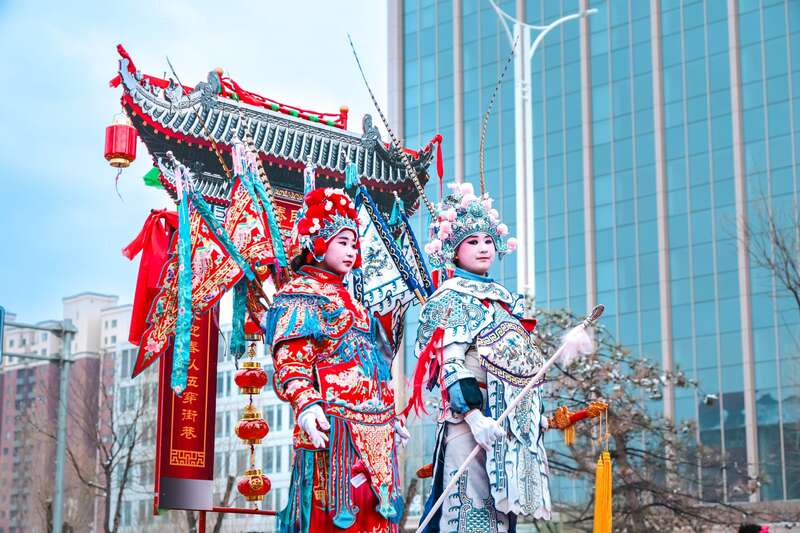 元宵佳节,山西省晋中市榆次区的街道化作民俗舞台,社火巡游的盛景在大街小巷热烈上演。这组镜头定格了榆次社火的多元风貌:戏曲扮相的精致彩车、铿锵前行的巡游队伍、翩跹起舞的秧歌方阵,还有憨态可掬的大头娃娃、诙谐灵动的反串表演,每一幕都洋溢着浓郁的烟火气。