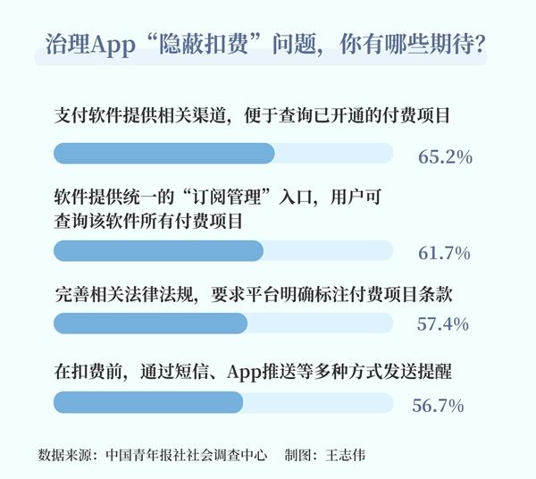“治理隐蔽付费需监管部门、平台、支付渠道协同发挥作用。”中国政法大学民商经济法学院教授、中国法学会消费者权益保护法学研究会副秘书长孙颖指出,监管部门应加大抽查与处罚力度,提高平台的违规成本,支付渠道应增设自动续费提前提醒、一键取消功能,减少隐蔽付费的出现。