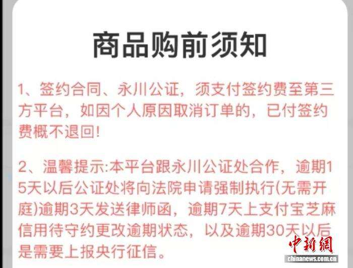 该服务商透露,平台可对接公证处,在支付公证部门抽成20%后,可为手机、黄金、汽车等相关合同办理公证。“有了公证书后,违约直接出强制执行书,不需要去法院起诉。”