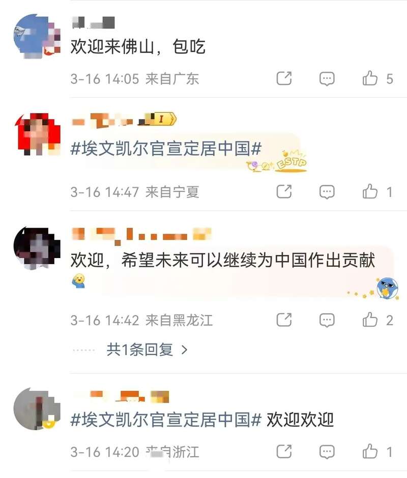 3月15日晚,埃文·凯尔在社交媒体发布视频,宣布定居中国,他配文说“定居华夏、逐梦新程”。网友纷纷在视频下留言,表示欢迎。