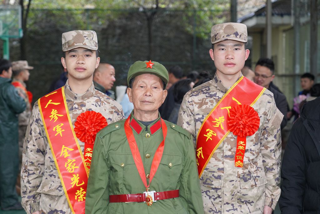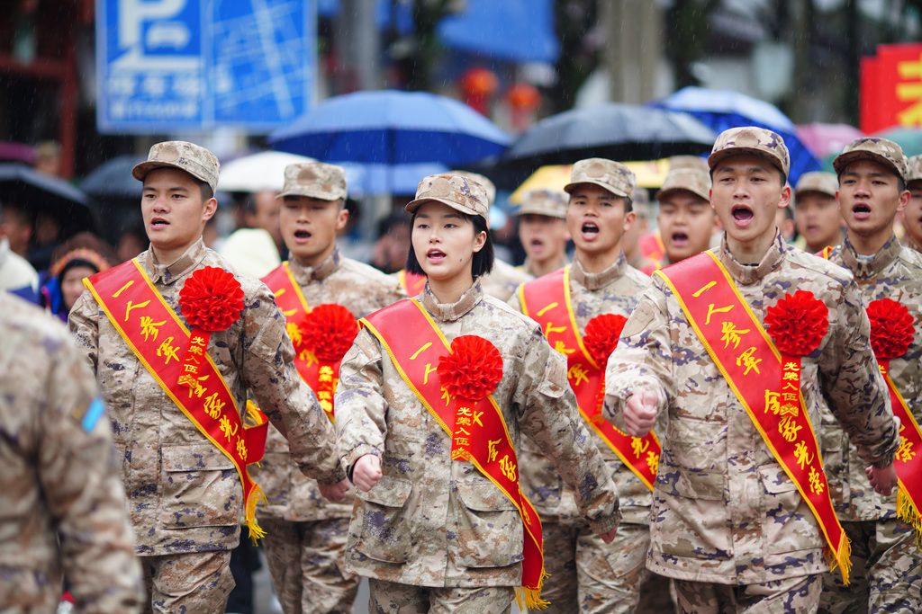 2026年3月16日,贵州丹寨,黔东南苗族侗族自治州丹寨县举行新兵入伍欢送仪式。入伍新兵身着戎装、胸戴红花,精神抖擞、整齐列队,带着家乡人民的嘱托与期盼,即将奔赴军营,履行保家卫国的神圣职责。