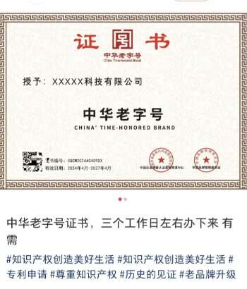 小红书平台上有不少“中华老字号”相关信息。记者在一个网帖下留言咨询申请中华老字号的条件后,博主很快发来私信,“办理老字号请加微信……”。博主小尹开门见山,介绍自己公司在江苏,多年来办理“中华老字号”,“2000元最低价,包括一张证书和一个奖牌,一周左右办好。”但她同时承认,这个“中华老字号”和商务部评定的不是一回事,“我们只需要你提供公司营业执照和法人身份证正反面照片就可以。商务部的‘老字号’评定资料要求更严格,我们也办不了。”