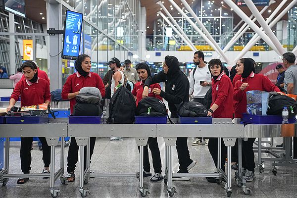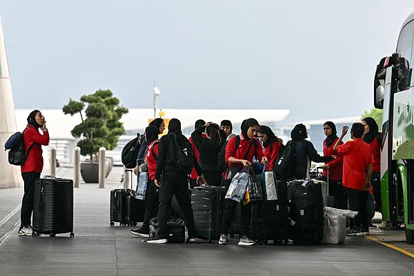 伊朗女足队员抵达吉隆坡国际机场准备返回伊朗